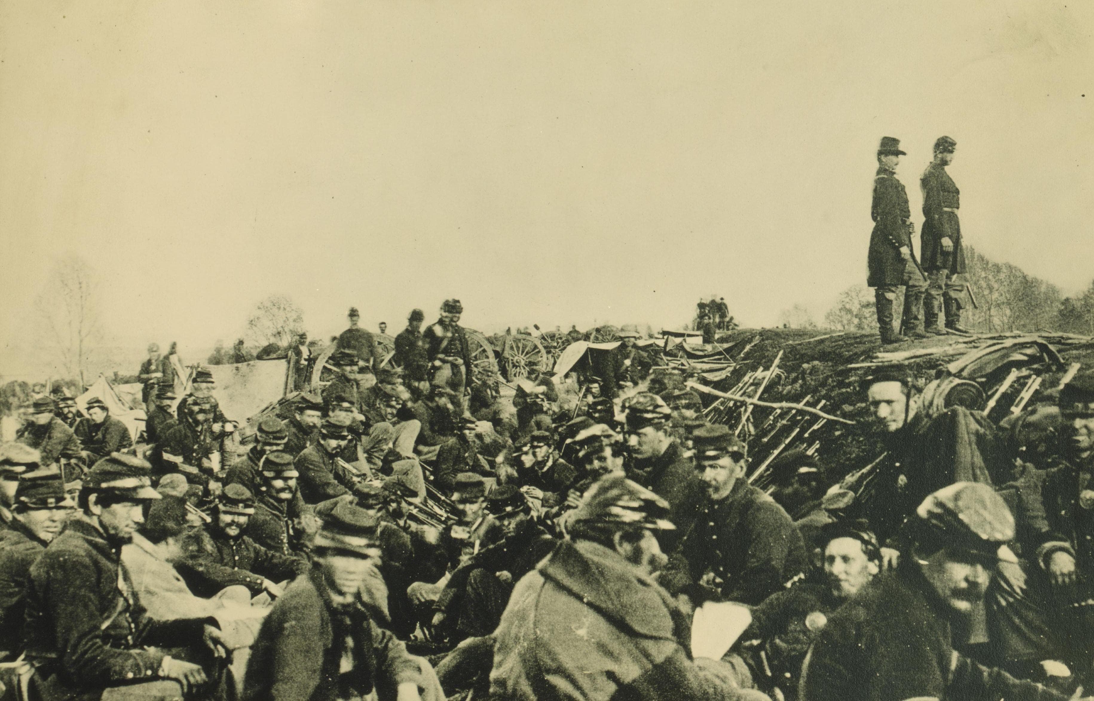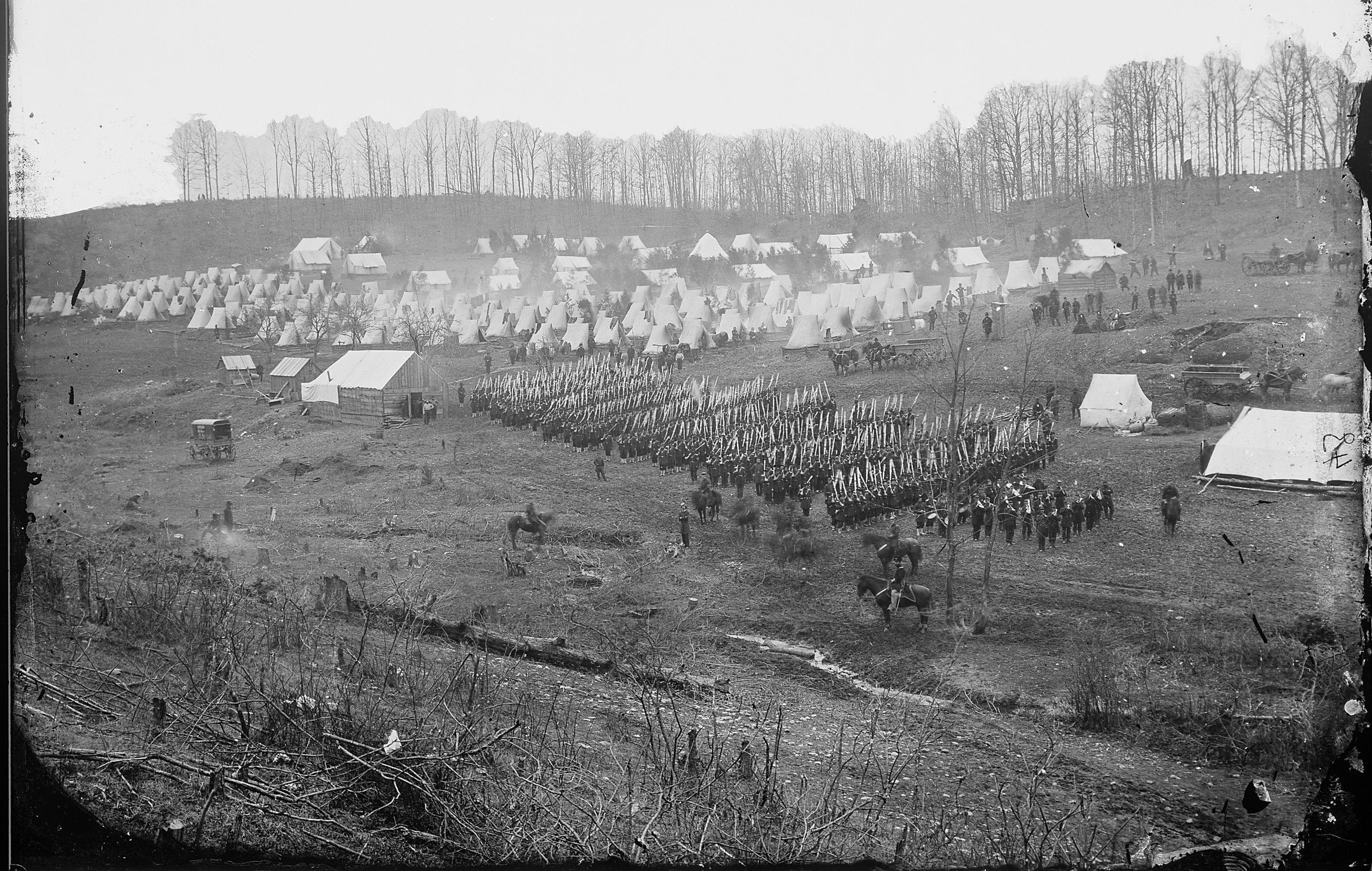 Here is a photo by Andrew J. Russel taken in the spring of 1863. It shows a large group of Union soldiers in Fredericksburg, Virginia sitting on the banks of the Rappahannock River waiting for whatever would come next.
