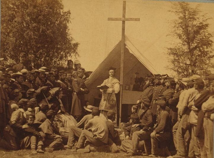 When you’re fighting in what would later be known as America’s bloodiest war, you probably spent some time considering your spiritual beliefs. These soldiers are shown attending a religious service before going into battle.