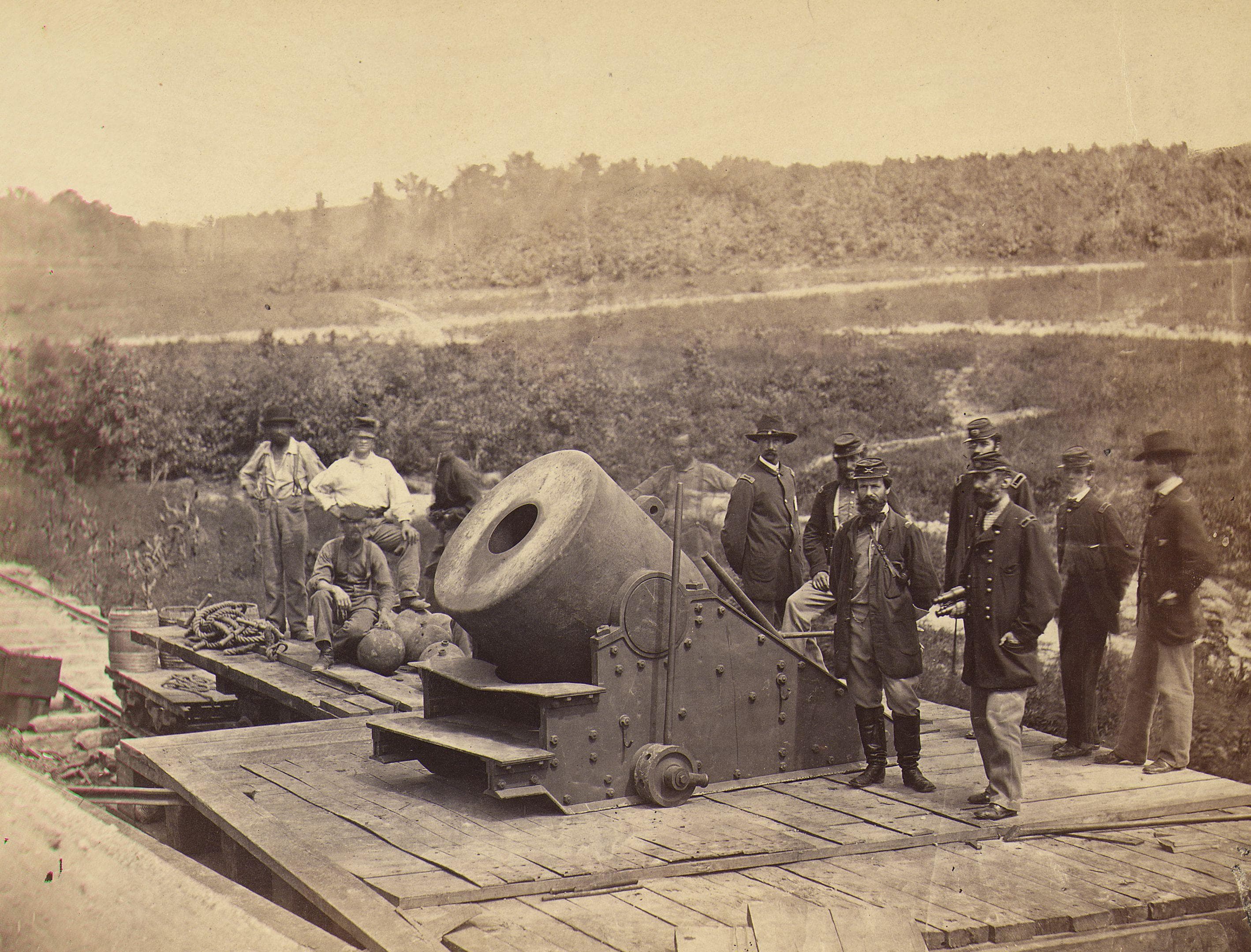 David Knox’s photograph of this giant mortar was taken in October 1864. The mortar was positioned in Petersburg, Virginia and these soldiers were ready for whoever came at them.