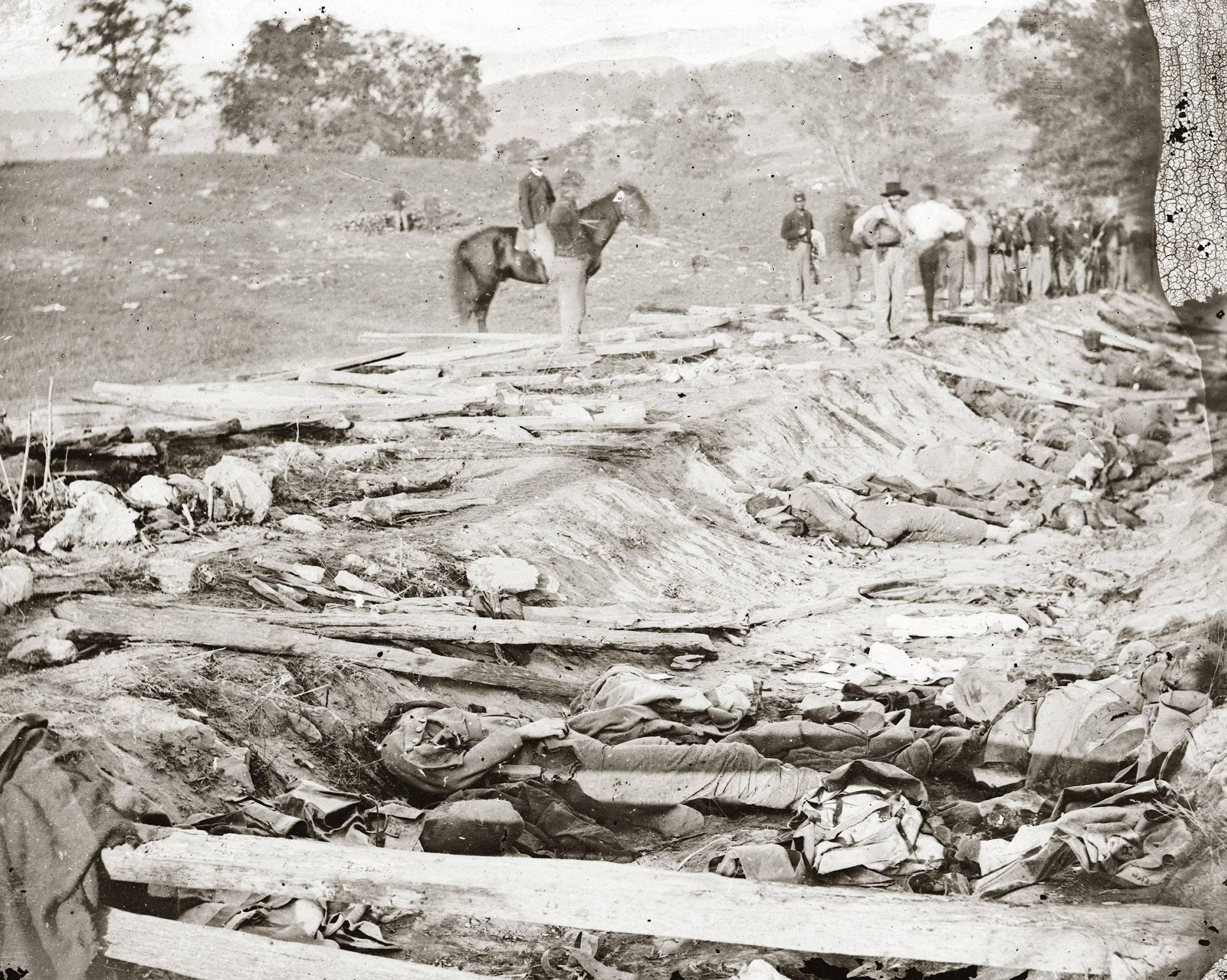 This photo by Alexander Gardner was taken in September 1862. It shows dead Confederate soldiers left near a fence at Hagerstown Turnpike after the Battle of Antietam.