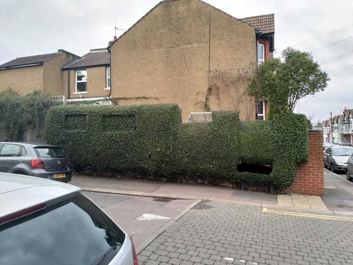 The owners of this building turned the topiary outside into a creative masterpiece. I honestly can’t quite tell what it is, but I think it might be a train.