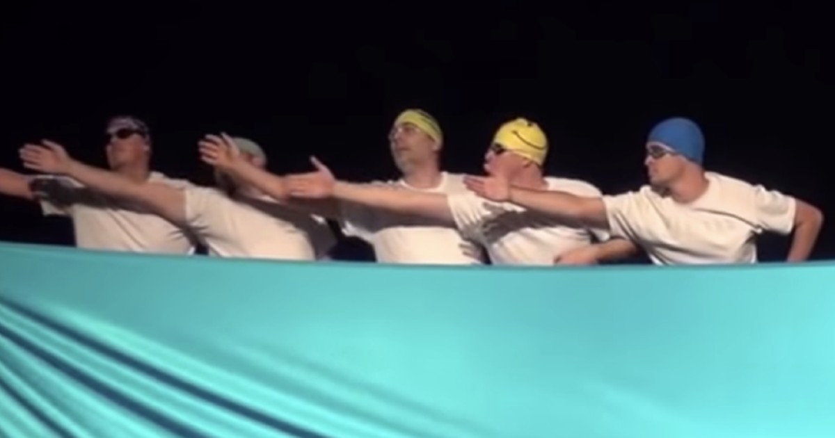 It’s obvious these guys are having a blast. Even better, they’re keeping the audience in stitches. They do all kinds of hysterical moves like the backstroke, rowing a boat, and even juggling. Throughout the entire five-minute video, people can’t stop laughing. These men are putting on a fantastic show.