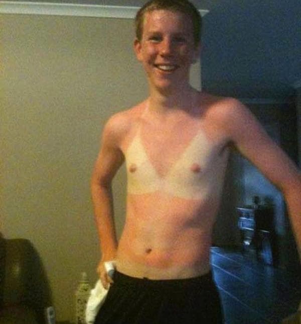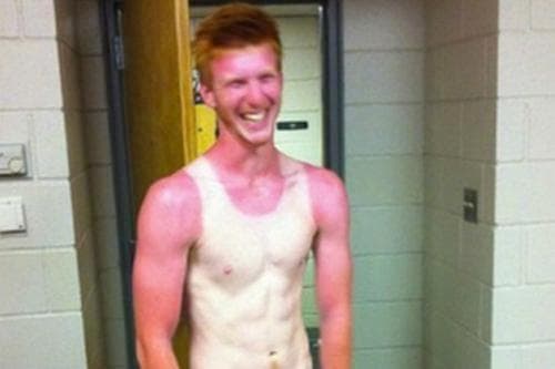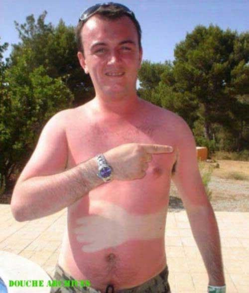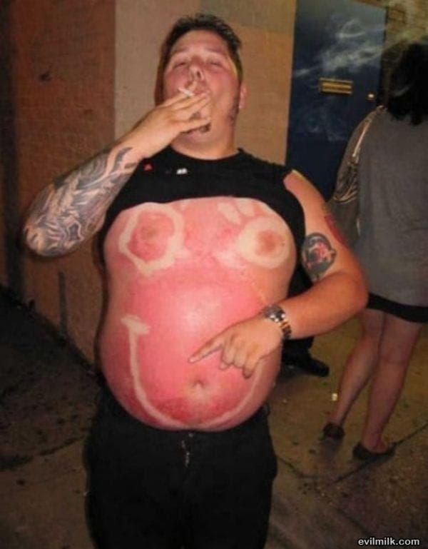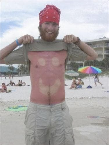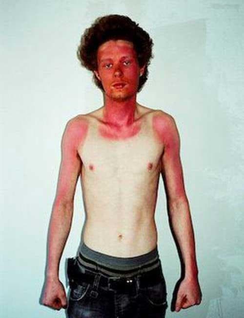 At first glance, all you think when you see this guy is “Ouch!” But when you look a little longer, you have to ask yourself — how on earth did he manage to get sunburned on his torso but not his shoulders?