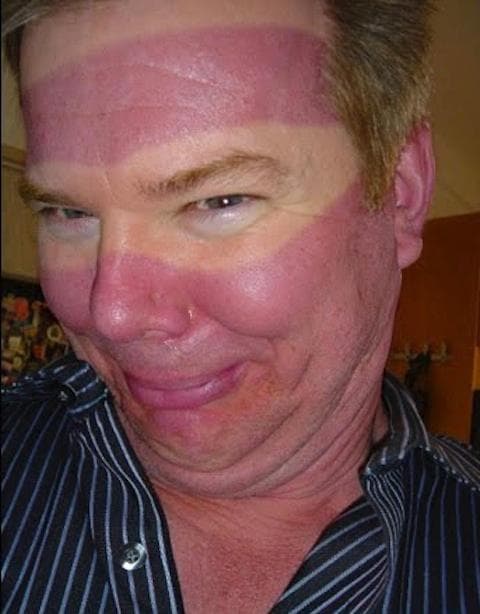 This guy might be laughing off his odd new look but take note everyone — a hat and sunglasses are not enough to protect you from the sun. You need actual sunscreen!