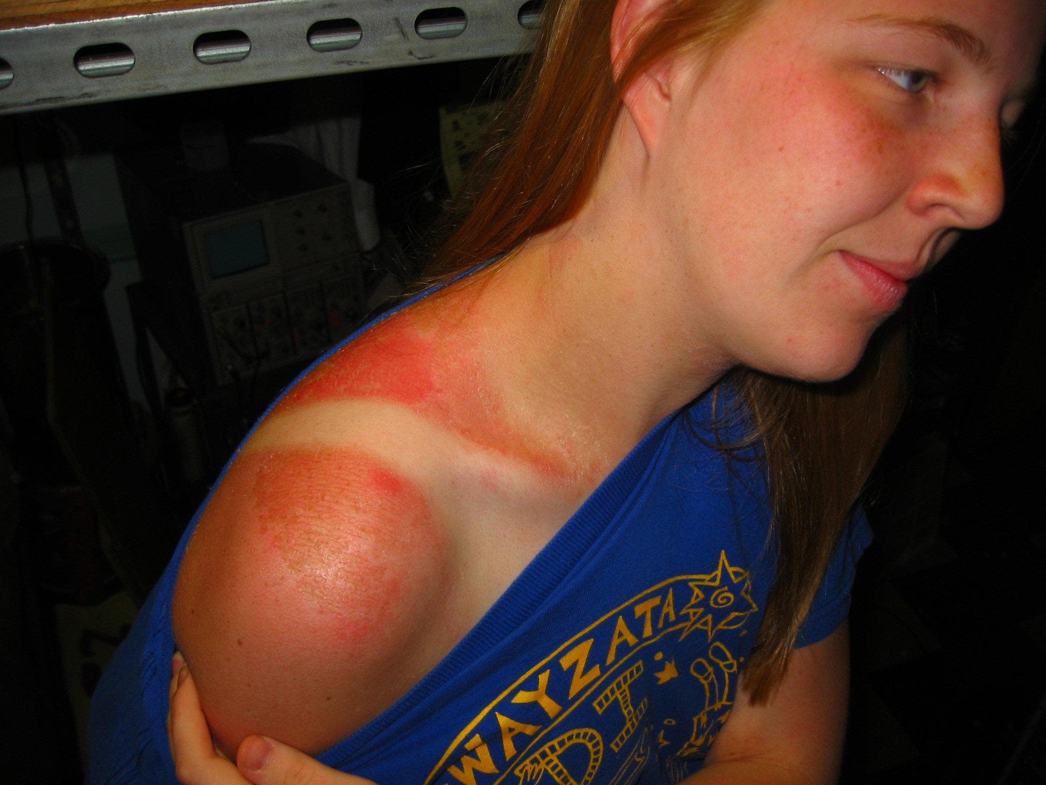 Having extremely fair skin can be torture when spending a lot of time in the sun. This redhead is paying for the hours she stayed outside with this painful burn.