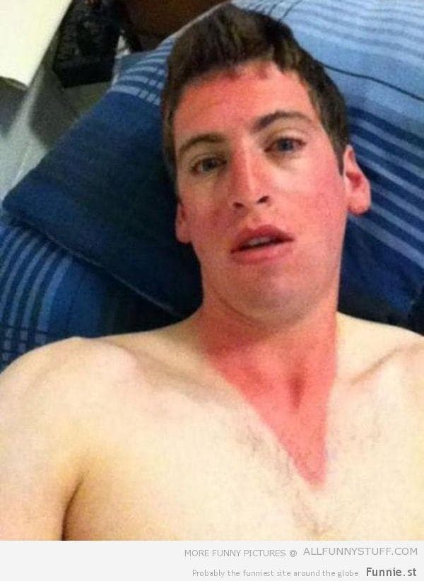 This poor guy most likely fell asleep in the sun in a group of friends. It was an amateur mistake that he clearly paid for. He needs some sunscreen…and some better friends.
