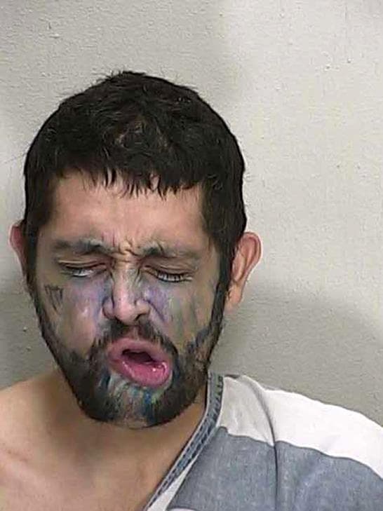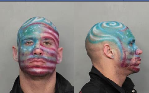 Is it a surprise to any of us that this guy was arrested in Florida? We don’t know what his crime was, but I feel pretty confident guessing his thoughts on his country. Come to think of it, I can also guess his opinion of face tattoos.