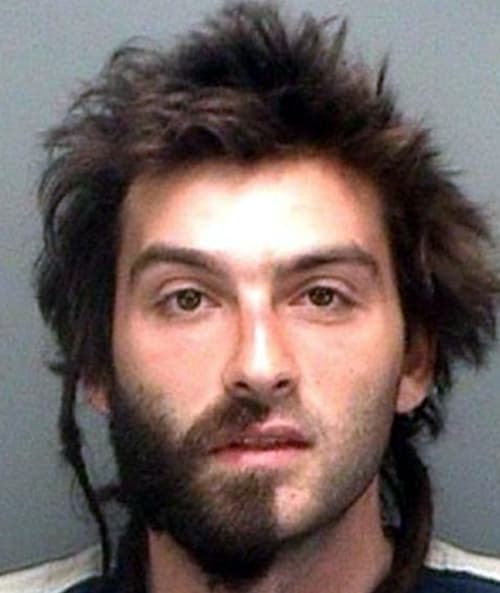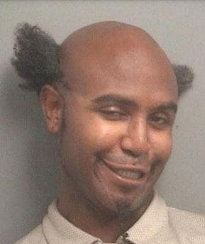 Maybe this guy was arrested in the middle of a haircut. I can’t imagine why else he would have only half his face shaved unless it’s a REALLY bad fashion statement.