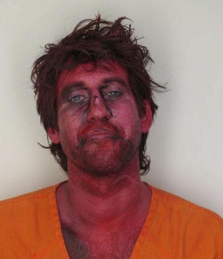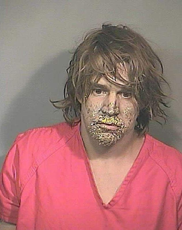 This guy was arrested in West Virginia for huffing paint, which didn’t exactly come off in time for him to pose for his mugshot. I’d say that’s some pretty conclusive evidence unless he has a REALLY good explanation.