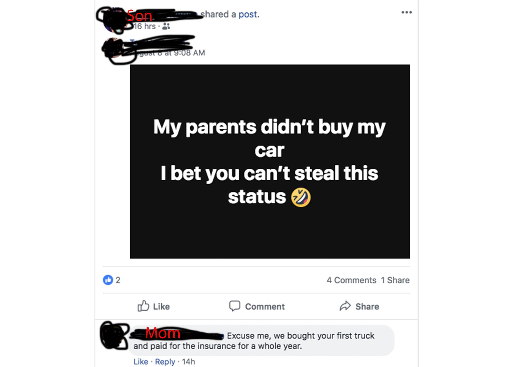 Why would you brag about something when you know it doesn’t apply to you? If you’ve got to brag on social media, focus on something that’s not so easily disproved by your annoyed mom.