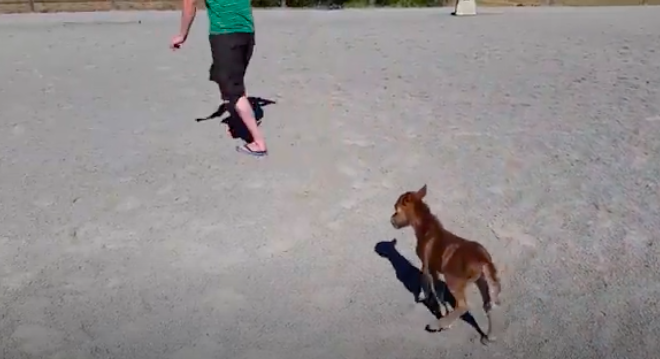 In another video, Bartow is behind the camera as the 3-day-old mini-horse chases him