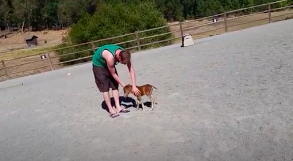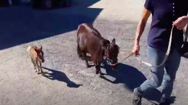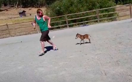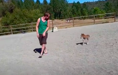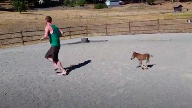 This little guy is too cute, seeing him run after his new friend is something that just warms your heart. To see the baby miniature horse chasing Sterling Bartow around his pen, watch the video below!