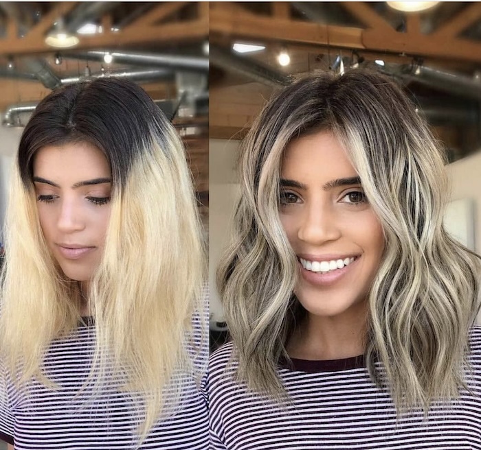 Watch as blonde fades into the luscious depths of brunette, igniting your look with a radiant shine.