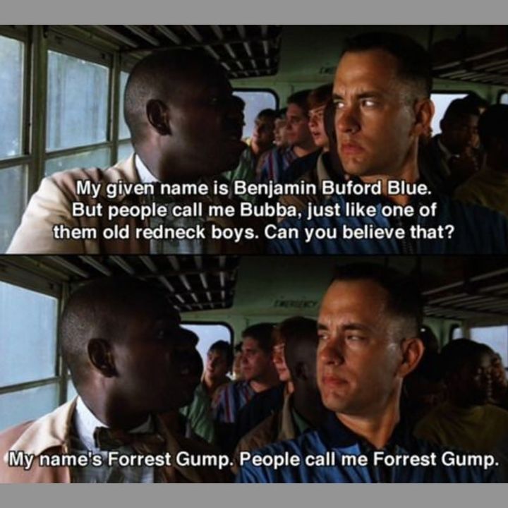 He did say what he said by accident. It’s when he says, “My name’s Forrest Gump. People call me Forrest Gump.”