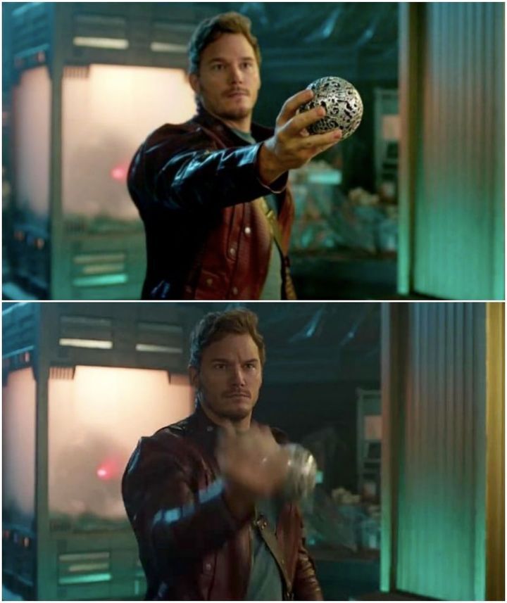 Scenes that get left in the final cut but weren’t supposed to happen the way they did are rather insignificant, in the grand scheme of things. In Guardians of the Galaxy, Chris Pratt ends up dropping an orb.