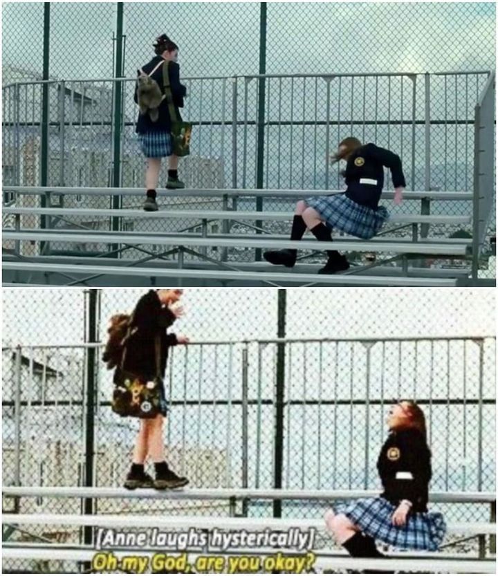 But during the filming of The Princess Diaries, two girls are walking on the bleachers, and then one of them takes a bad fall. That fall was an accident, but it ended up making the final cut.