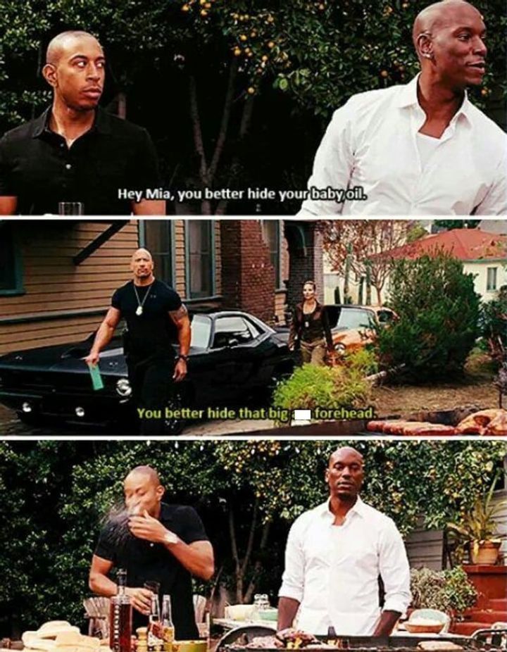 During Fast and Furious 6, there’s an infamous line that Dwayne Johnson ended up saying, which he came up with himself because Hobbs, his character, wasn’t supposed to say anything.