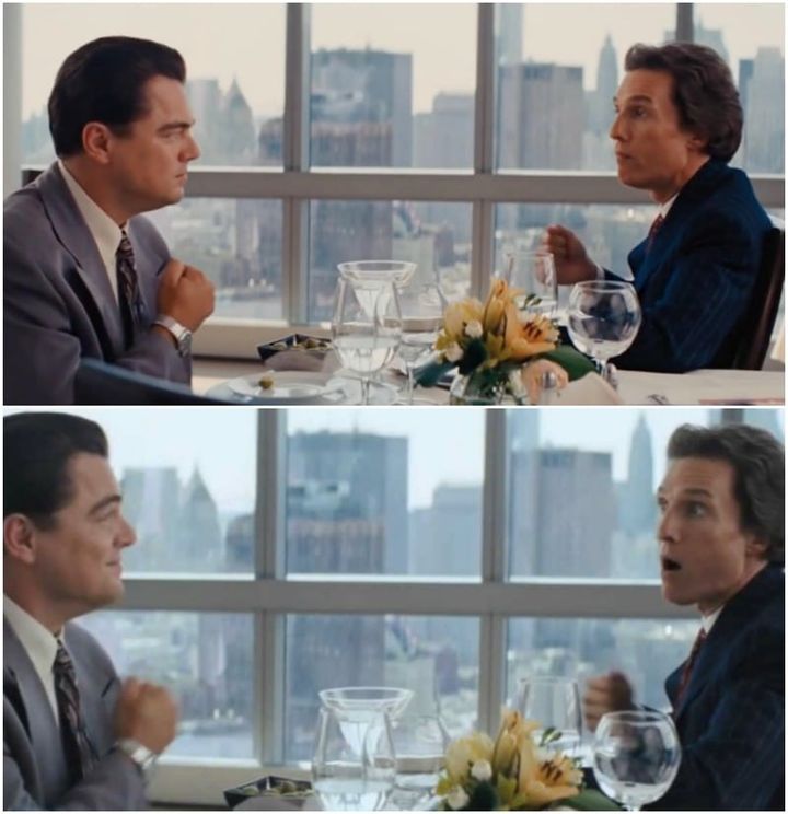 Credit goes to Leonardo DiCaprio for this one. When filming The Wolf of Wall Street, Matthew McConaughey’s character bangs his chest, and it turns out that the actor did it before each take for relaxation.