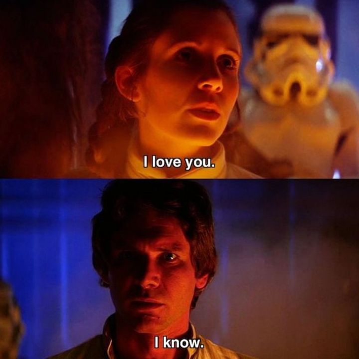 During Star Wars: Episode V – The Empire Strikes Back, when Princess Leia says she loves Han, he’s supposed to reply with, “I love you too.” Instead, Ford thought it was more appropriate to say, “I know.”