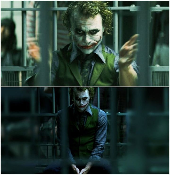 Heath Ledger in The Dark Knight deserves every ounce of praise heaped on him. The scene where he’s behind bars had him doing a bit of improv.