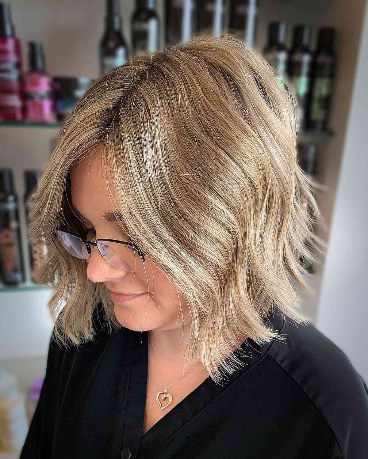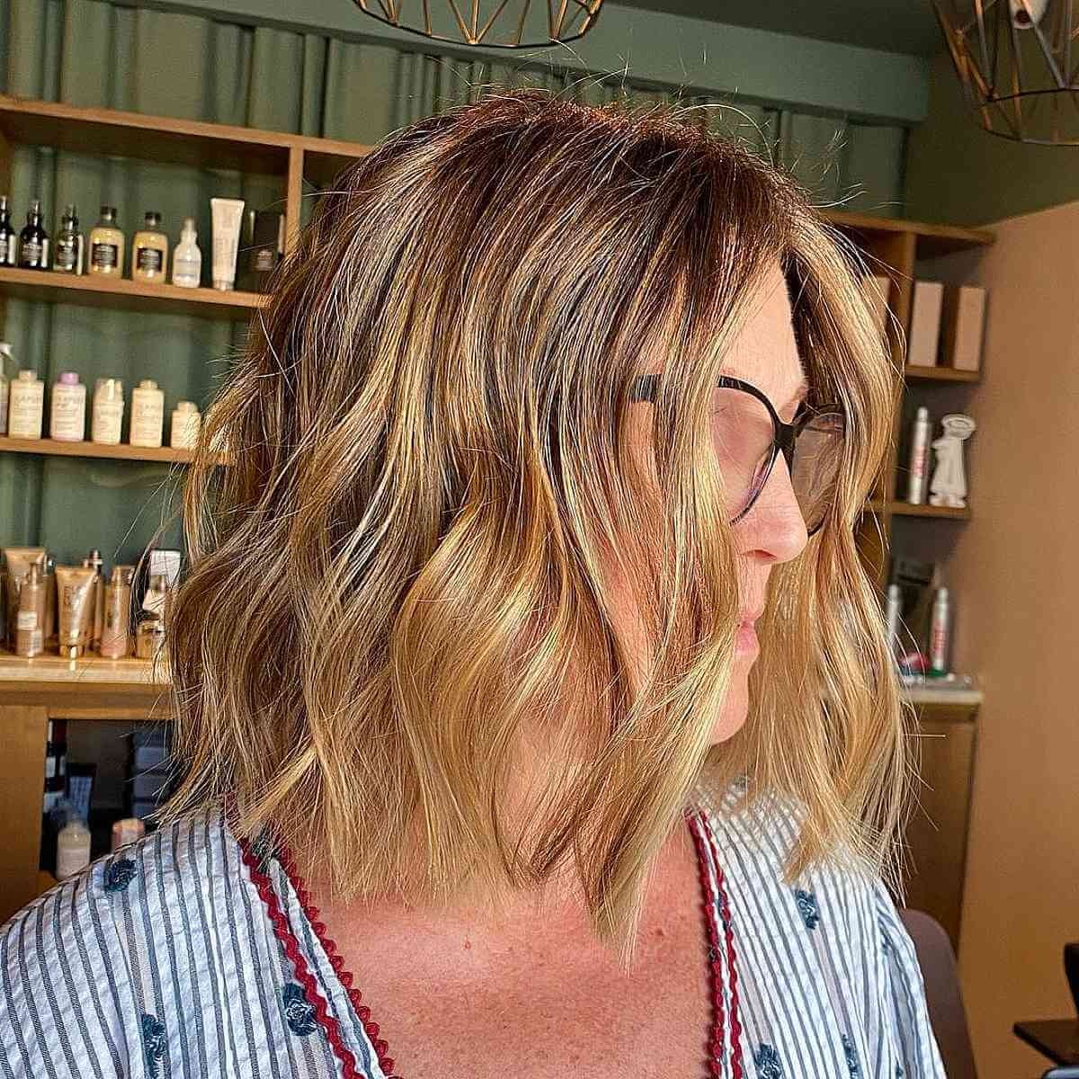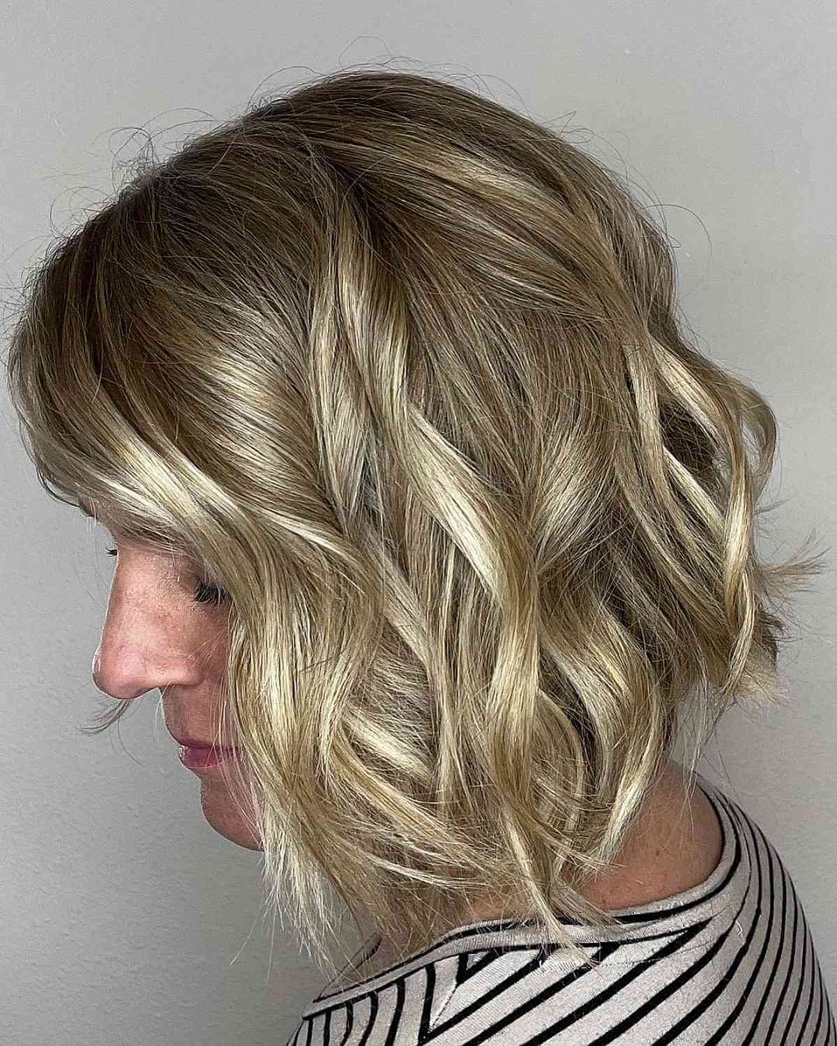 Lastly, a choppy, mid-length bob with beach waves is a winning style for women over 40. Its textured, tousled finish keeps things lively, while the length makes it incredibly versatile for everyday wear.