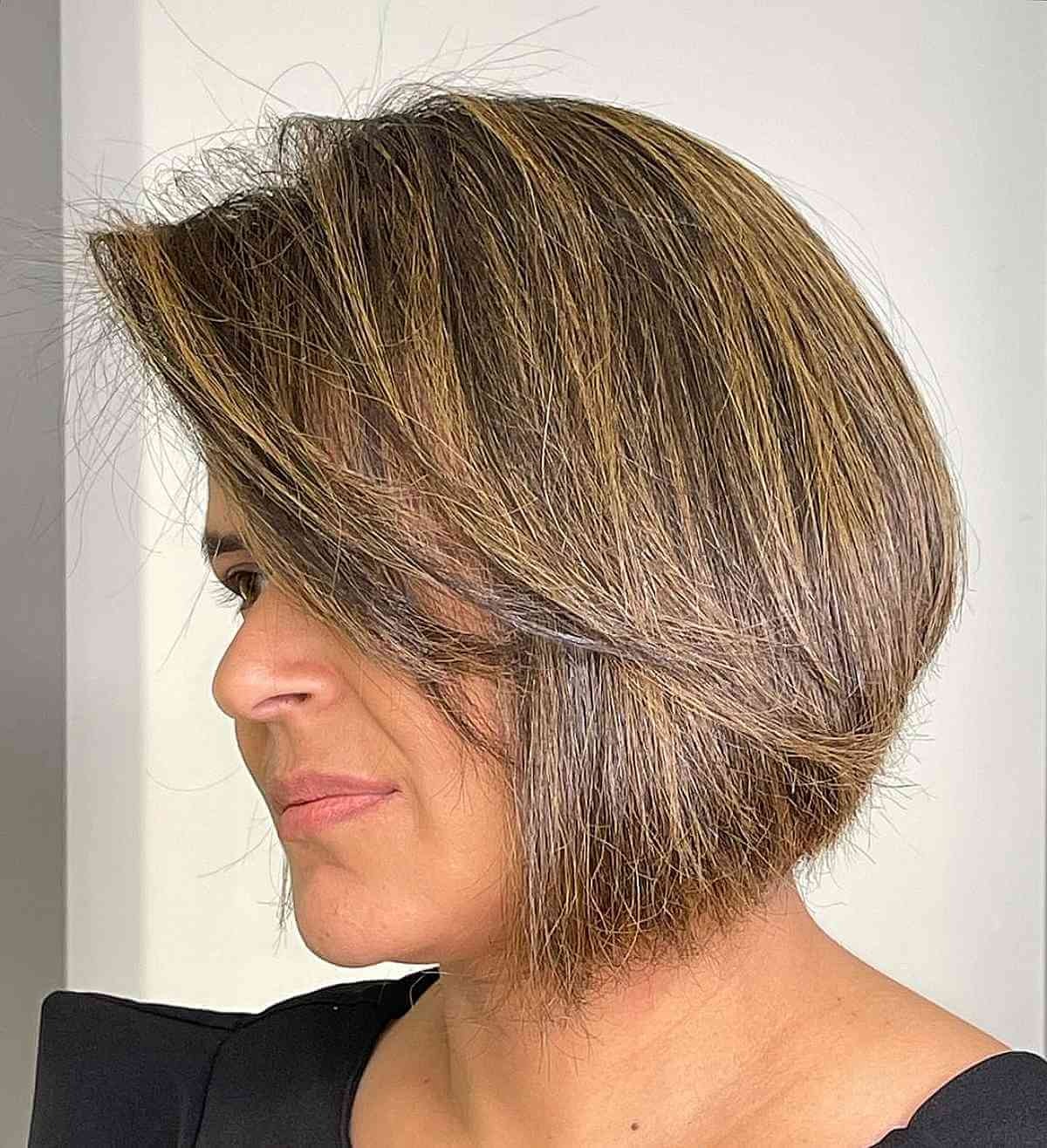 A dark brunette bob with volume is an exceptional style for women over 40. Keeping the length one-length and adding layers at the crown provides fullness. Blow-dry with a round brush and light volumizing mousse for bounce, avoiding heavy products that might weigh hair down.