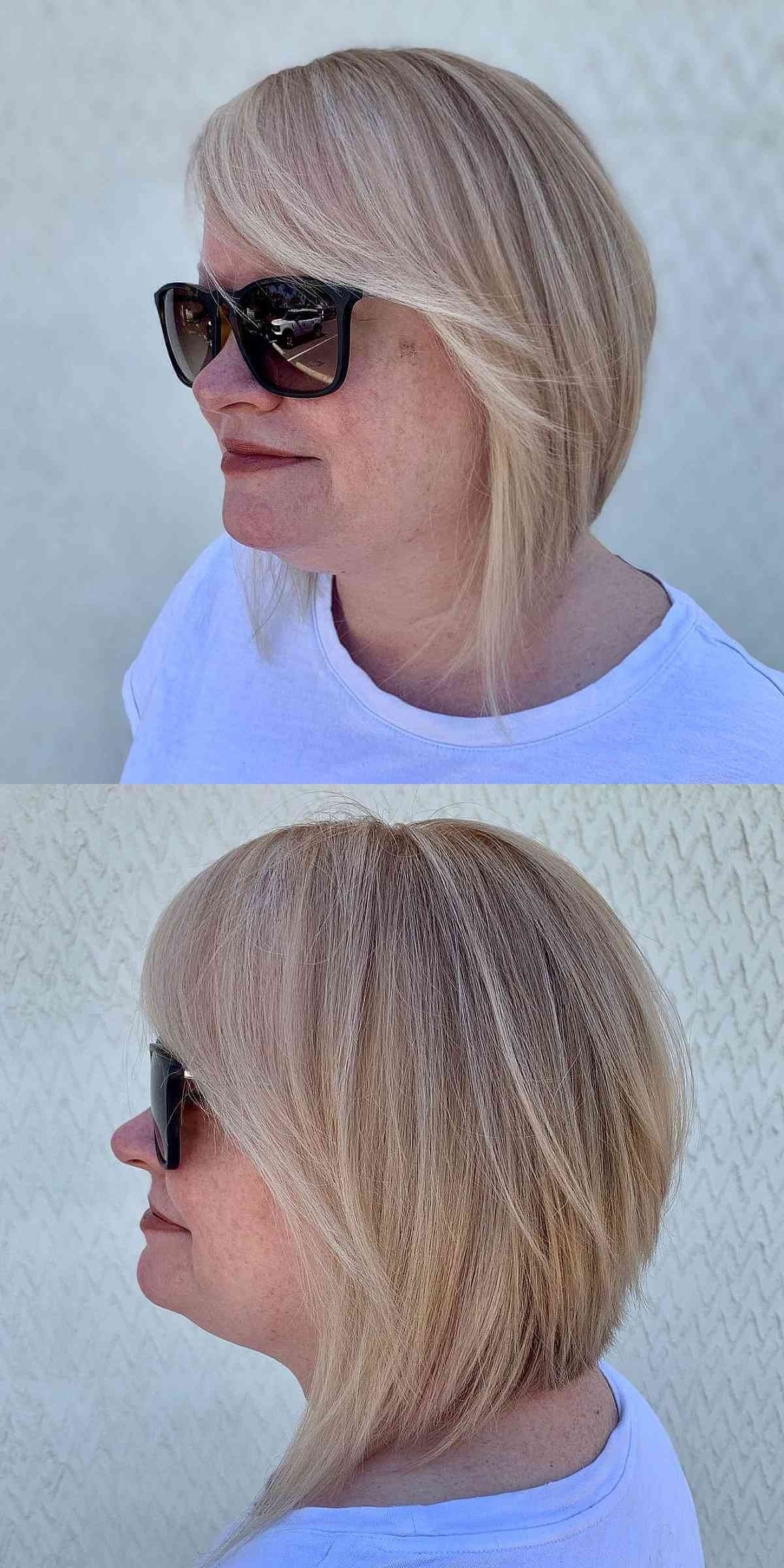 Swept Inverted Bob with Side-Swept Bangs for Round Faces