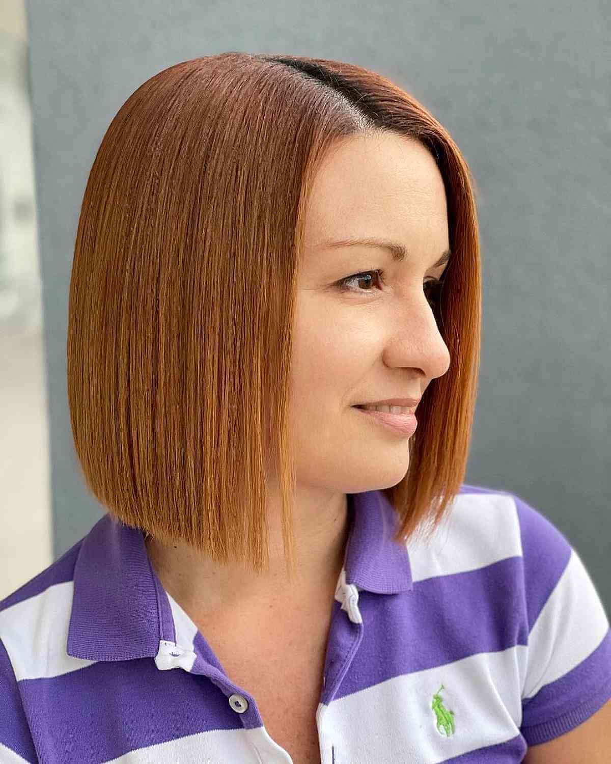 If you’re feeling bold, try a blunt bob with warm orange tones. The vibrant color adds richness and flair to a sharp cut, looking especially bright against light or dark hair.