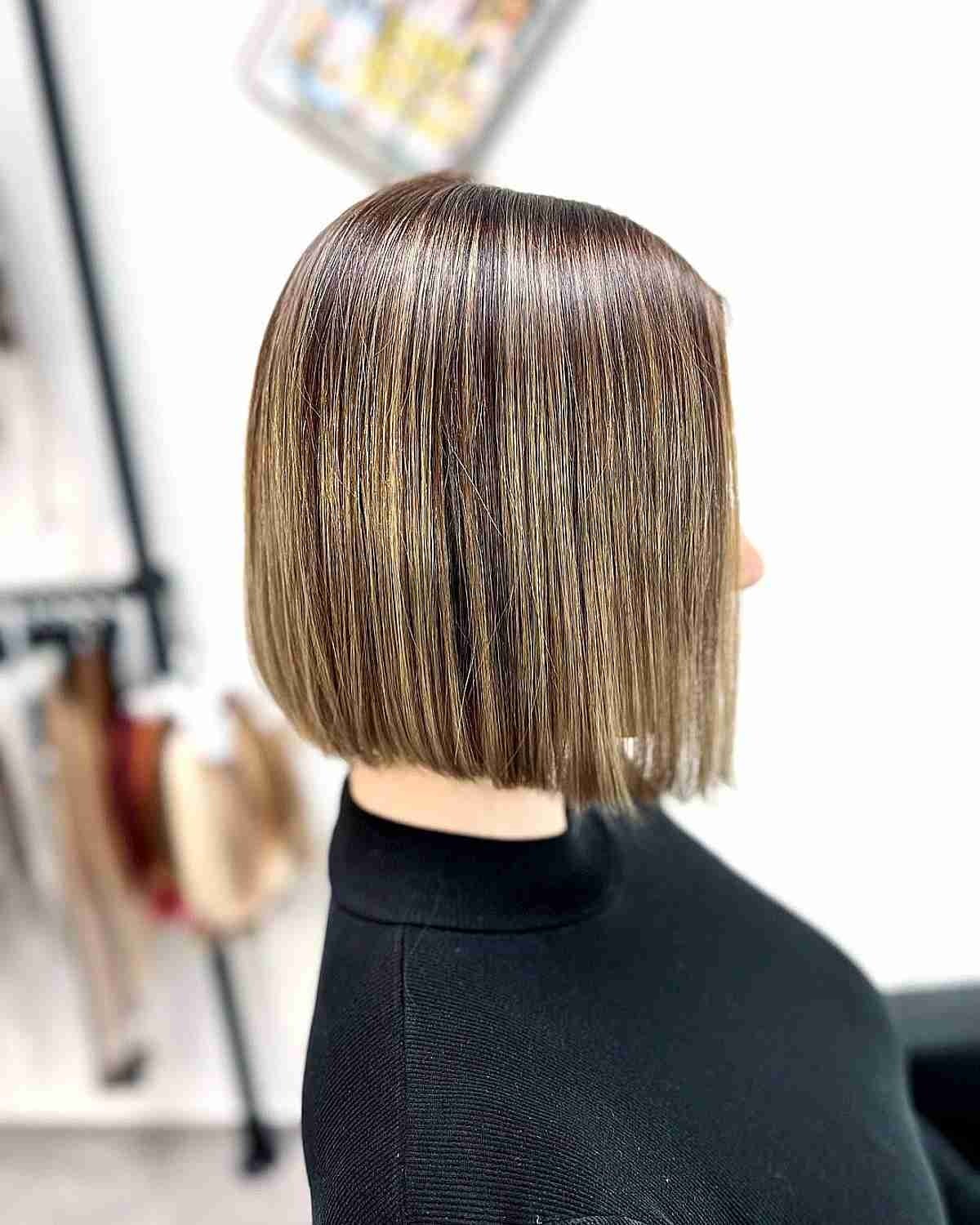 For fine hair, a short, straight bob cut at neck length is a game-changer. The blunt ends add thickness and weight to the style. Subtle babylights give delicate dimension, creating the illusion of even fuller, richer hair.