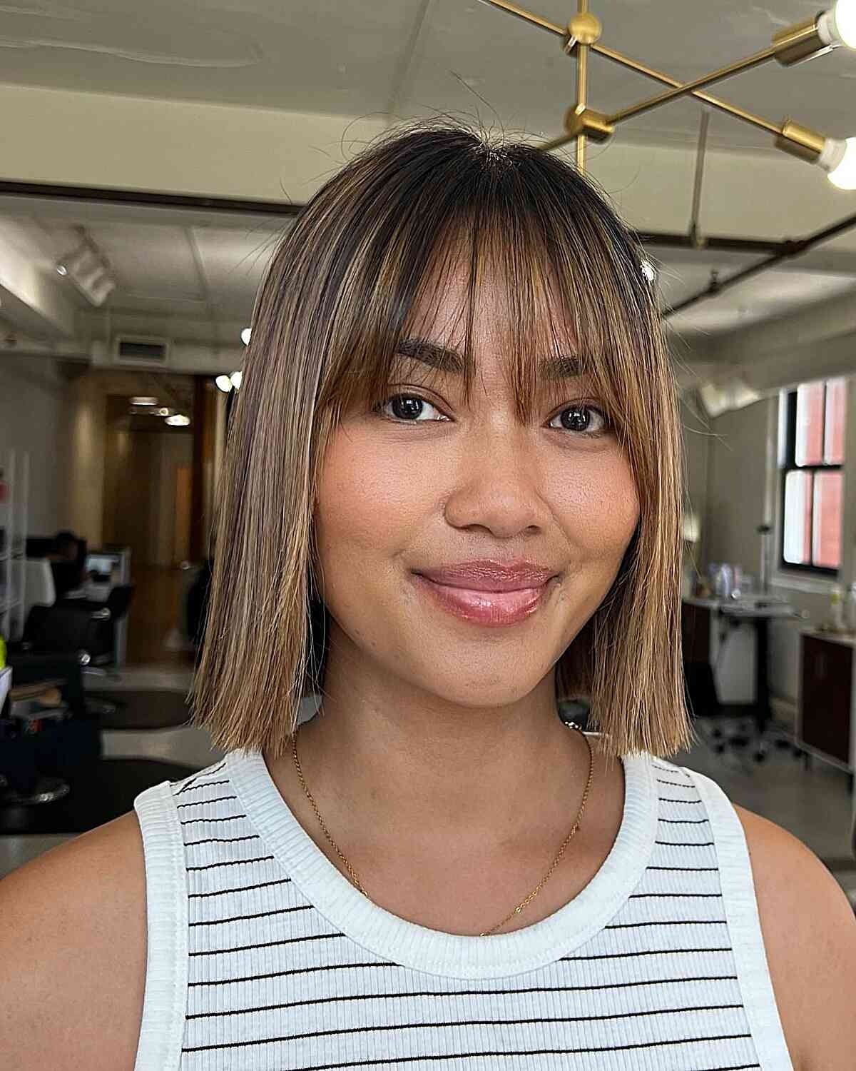 Asymmetrical Bob with Airy Fringe for Full-Faced Women