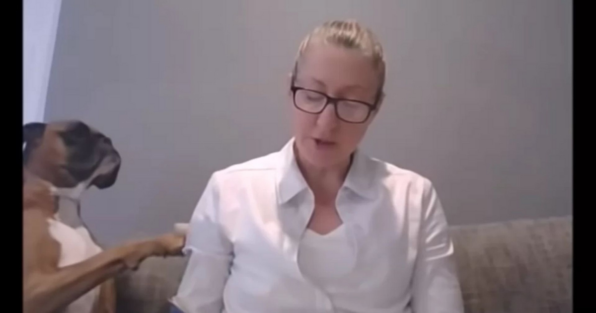 When Deanne tries to read a book to her students watching online, Archie the Boxer decided that he should get some attention from his owner as well.