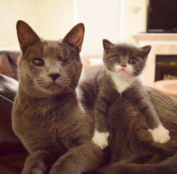 Suzi is getting up there in years, but even though she’s a bit grayer and slower in her movements, her maternal instincts are still strong, and she still absolutely loves her cat companions. What a sweetheart! If you want to see more photos of Suzi, check out her Instagram page.