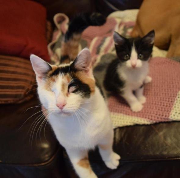 Kelly knew she needed a cat that could stay with them. She adopted Kushi, a cat with one eye.