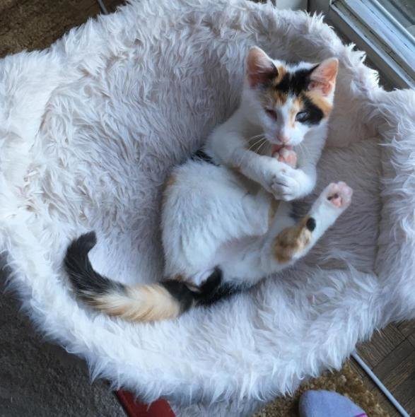 She adopted a blind cat named Sunny. She knew Sunny would fit in well with the other pets and wasn’t sure if anyone else would adopt her since she is blind. Kelly said: