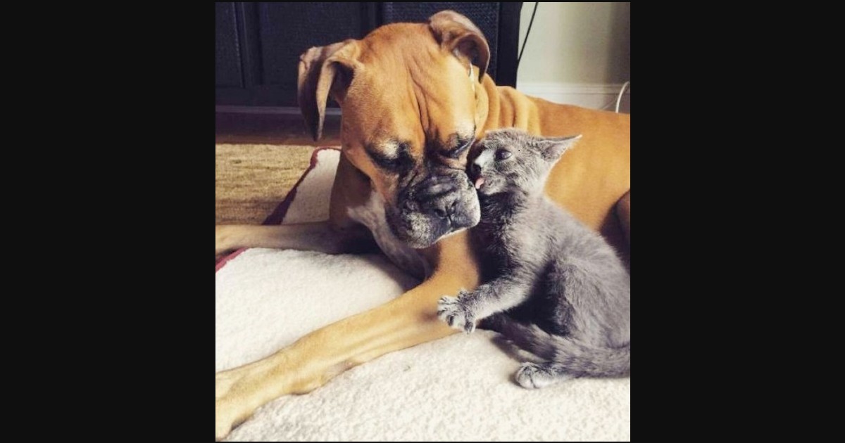 Suzi the boxer absolutely loves cats.