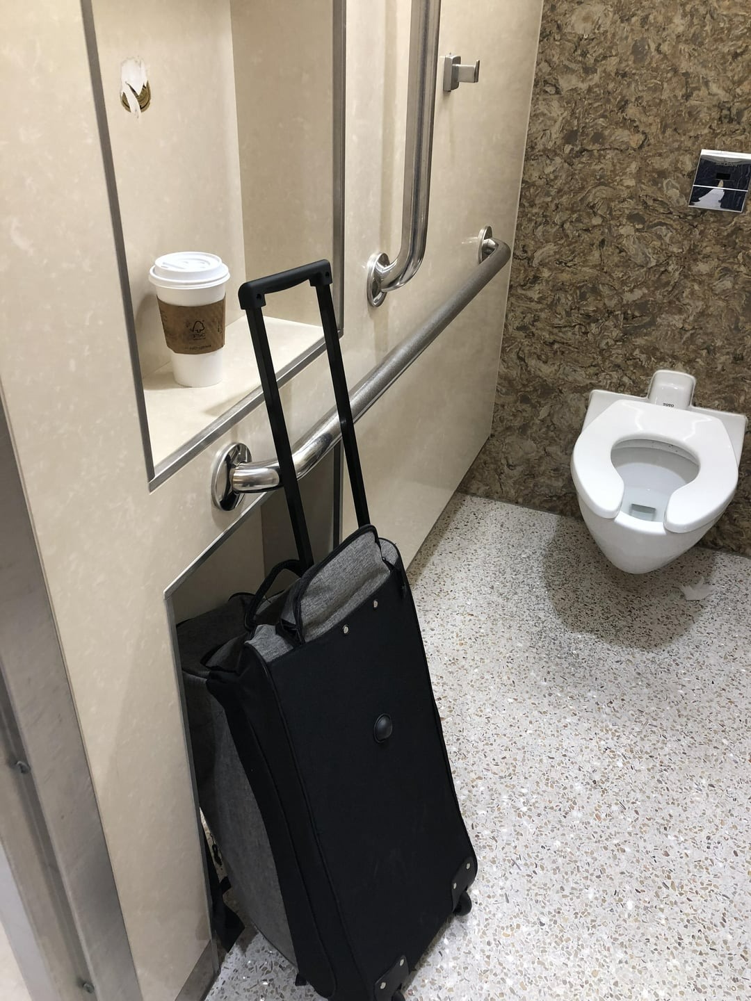 “Business class was overbooked so I volunteered to move back to economy class in an aisle seat by the bathroom. I got a two for one deal for doing so.