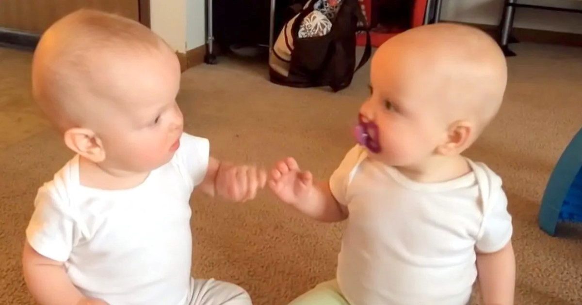 When you think of twins, usually you think “two of everything.” Two cribs, two car seats, two strollers – but for these babies, they both want the same pacifier.