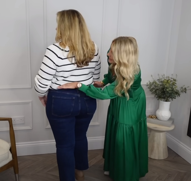 Instead, just pull down the back of your shirt to cover the top half of your backside. This makes your hips and backside smaller than it looks.