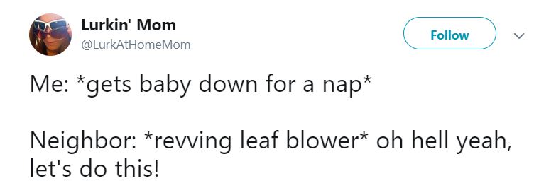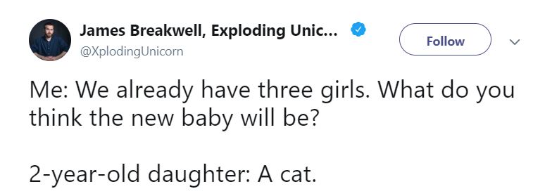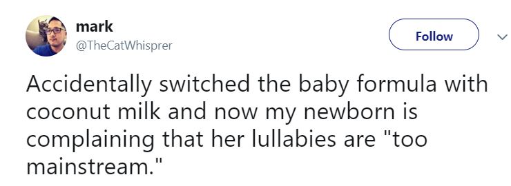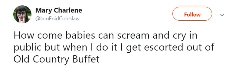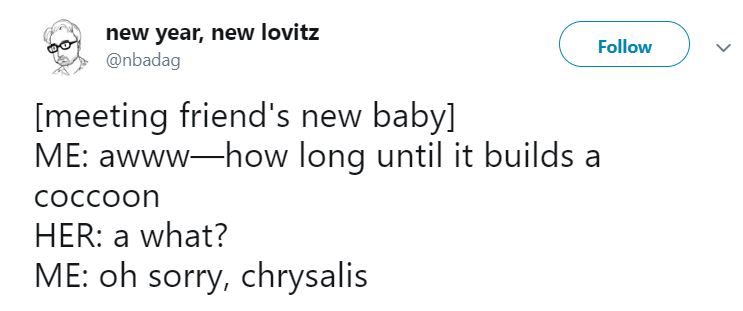 This tweet only applies to people who happen to have a baby with them, of course. You could also put in a dog or a small bird if you prefer.