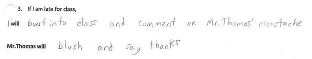 This kid thought this would work and, it’s actually a pretty decent shot. Unfortunately, the teacher saw through it. At the same time, my first impression is to admire the guts this took.