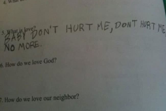 I’m imagining the teacher’s face as they looked through the class assignments to mark them. This kid was just being goofy, but it’s still kind of an awkward situation. What exactly are you supposed to say to that?