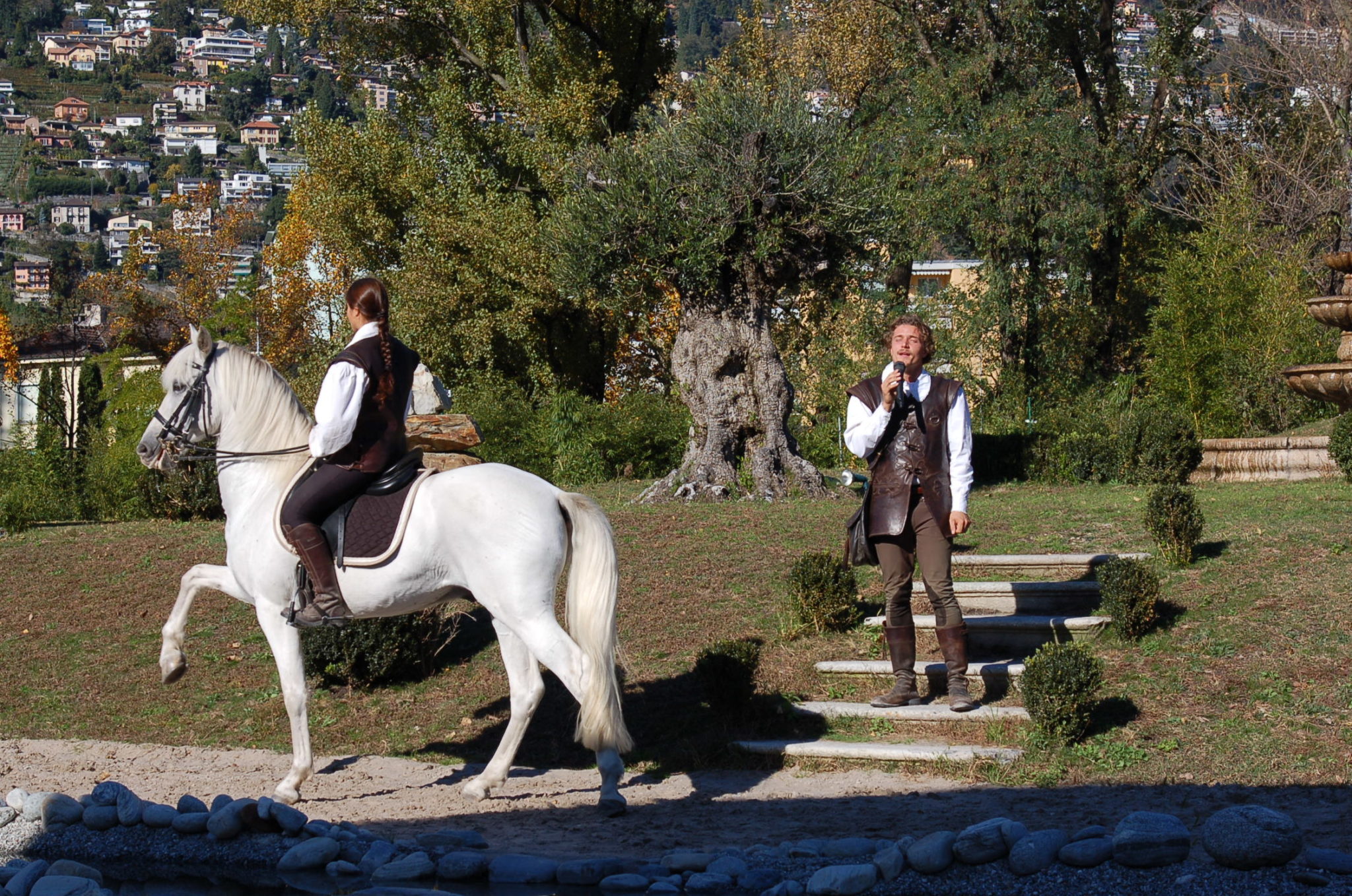 Some decorated mare galloping at a renaissance fair. Clip-clopping along as part of some Elizabethan display of elegance while a squire sings Ye Olde Ballad of Greensleeves.