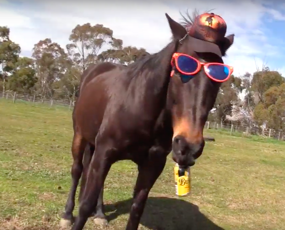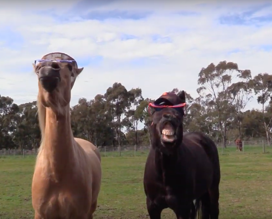 And not only does this horse have moves, but style to boot! It’s hard for people to pull off giant sunglasses and a cap, but for a horse, it’s not a problem at all!