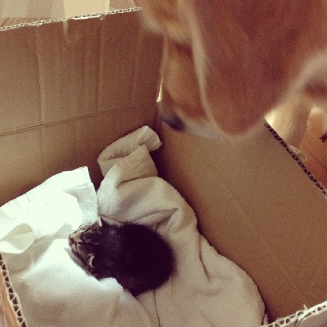 As luck would have it, Ponzu’s dad came across a tiny kitten that had been rejected by its mother, and they gladly took it in.