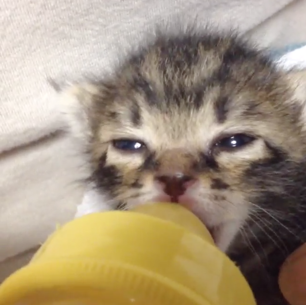 At first, it was touch and go whether the tiny kitten would make it through the week. She was very small and weak and had to be bottle-fed regularly.