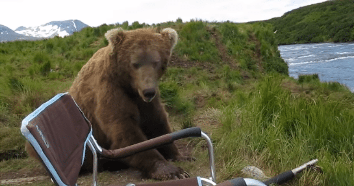 After the Grizzly bear sat with Hamilton for a few moments, he seemed to suddenly realize that he had somewhere else to be, and ambled off toward his peers in the river.