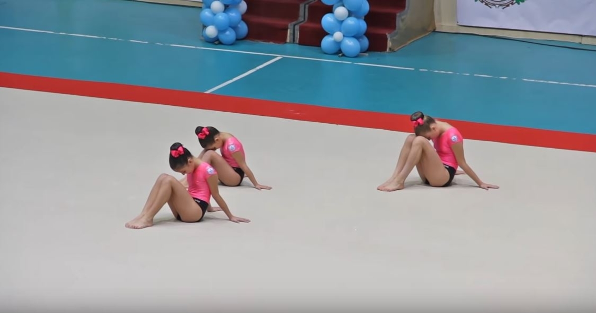 Taking center stage are three young girls. Wearing black and pink leotards, they look poised and focused. In the meantime, the stadium is packed with people. And they have to complete their routine in front of a large panel of judges. No pressure, right?