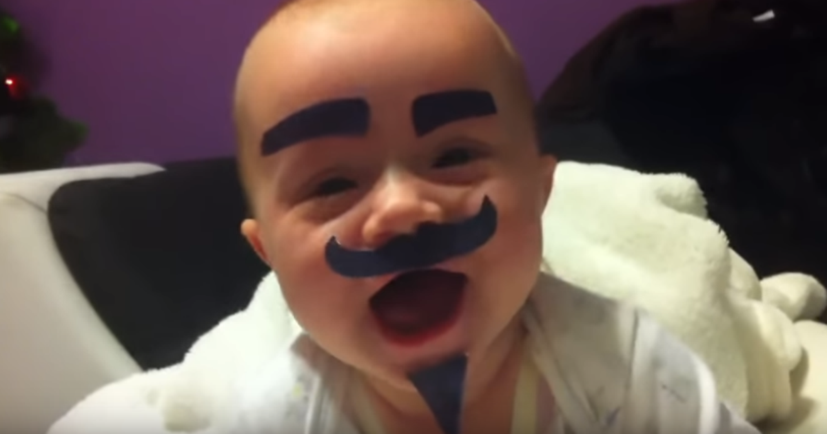 One by one, Dad brought paper cut-outs that were shaped like a mustache and a thin beard. These cut-outs were also pasted on the child’s face as Dad quietly laughs in the background, clearly entertained with his baby’s transformation.
