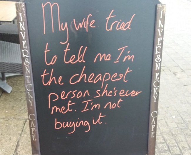 The establishment is called Inversnecky Cafe, and it’s located in beautiful Aberdeen, UK. In addition to serving up yummy food and drinks – they also keep customers and passersby entertained with their daily messages.