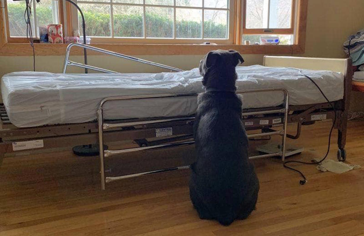 Moose was a then-two-year-old Lab mix adopted by his dad from Eleventh Hour Rescue in Randolph, New Jersey. Unfortunately, his dad recently died from cancer. But Moose didn’t know it and he patiently waited by his bedside for him to come back.